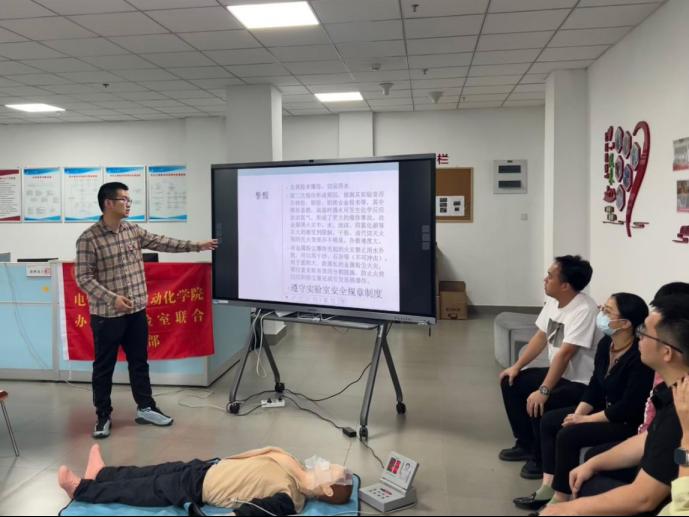 为加强高校党建与思想政治工作深度融合,助力“一站式”学生社区综合管理模式建设,电气学院积极推动基层党建进社区,进一步提升学生社区服务与管理水平。 4月24日下午,电气学院办公室实验室联合党支部携手思明苑学生社区党支部,在思明苑3号楼101办公室举行心肺复苏技能培训及用电安全教育活动。电气学院党委副书记邹团营,办公室实验室联合党支部党员代表,思明苑学生社区党支部党员代表,以及思明苑社区学生参加活动。