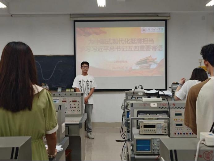 五四青年节来临之际,习近平总书记向全国青年致以了节日的祝贺和诚挚的问候,对新时代青年寄予了厚望。电气学院积极响应,以党建为引领,通过院党委理论中心组学习会、团委学生会心得交流会、班级主题班会等形式,系统地开展了五四精神学习活动,深入贯彻落实习近平总书记的五四重要寄语精神。