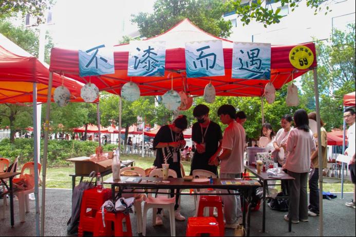为贯彻落实学校“阳光雨露计划”,丰富校园文化生活,展现我校学子青春风采,5月12日,电气学院团委实践部在艺术会堂前举办了一场别开生面的周末文化集市“不漆而遇”活动。