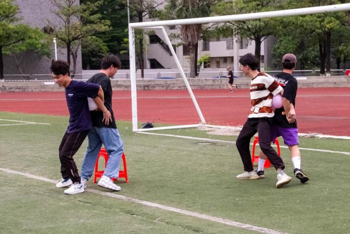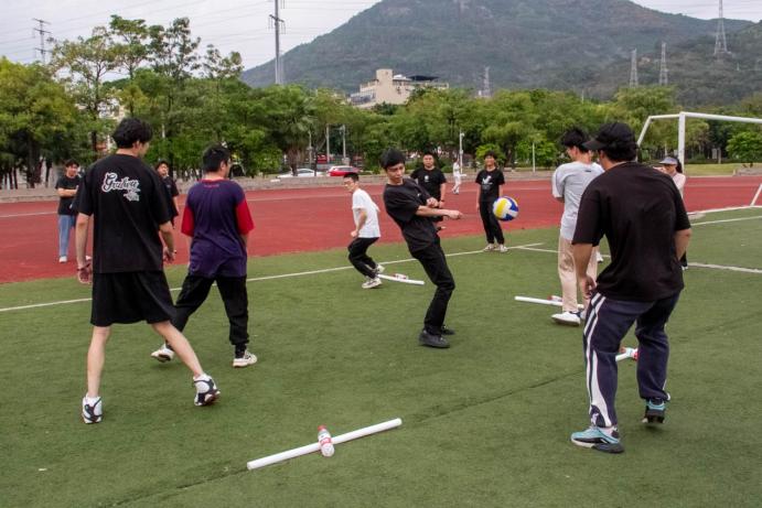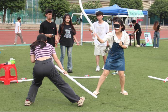 本次运动会项目设置丰富多样,旨在通过趣味竞技的形式,鼓励同学们“走下网络、走出宿舍、走向操场”。其中,“躲避球”挑战考验了参与者的敏捷性和团队协作能力,同学们在场上灵活躲闪,展现了出色的反应速度和集体智慧;“蒙眼对抗赛”则是对平衡能力和空间感知能力的挑战,参赛者在蒙眼状态下依靠队友的指引进行比赛,不仅锻炼了个人能力,也加强了团队间的沟通与信任;“背后就给你”游戏更是将速度与激情完美结合,赛道上同学们你追我赶,欢声笑语不断。此外,运动会还设有跳8字绳比赛、拔河比赛等多个项目,满足了不同兴趣和特长同学的需求。